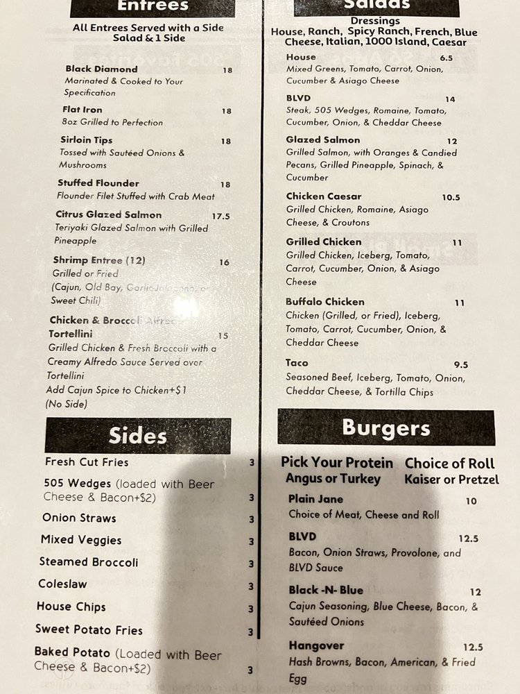 Introducing the menu at 505, an American restaurant located in Williamsport, PA. Known for their delicious food and welcoming atmosphere, 505 offers a variety of options for all tastes. Customers have raved about their brisket and queso burger, fish and chips special, and cheese cosmo. The menu includes classic bar food, chicken fingers, french fries, and a selection of soft drinks, wines, and alcohol. The friendly staff, including servers like Heidi, go above and beyond to ensure a great dining experience. With rave reviews from satisfied customers, 505 is the perfect spot for a post-show meal or casual lunch. Don't miss out on the onion straws with spicy ranch and the special touches that make every visit memorable. Visit 505 for a fantastic culinary experience in downtown Williamsport.